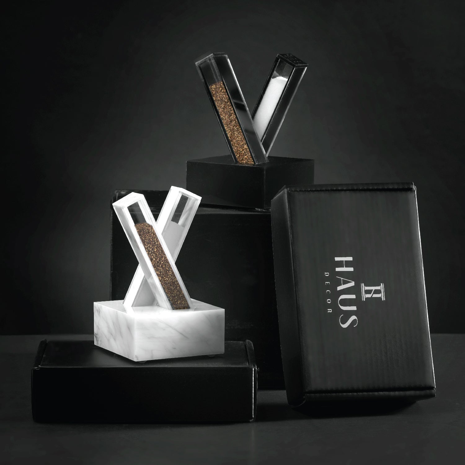 X Salt and Pepper Set- Black Lucite