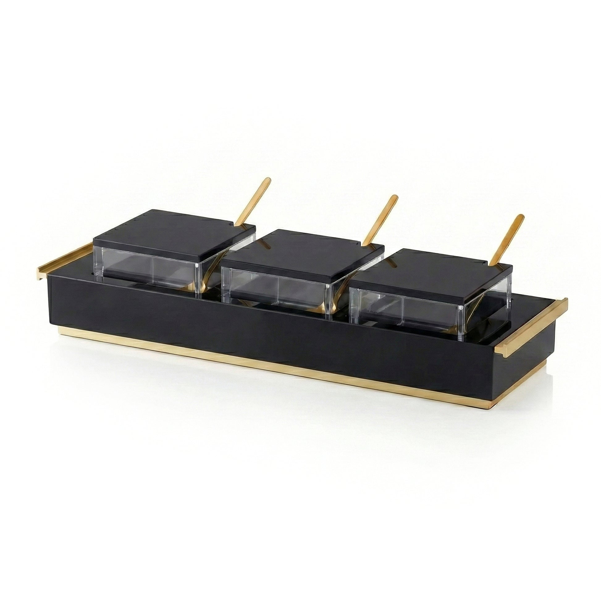 Upgrade your dining experience with this beautiful and practical set. Made from thick durable lucite, the Square Dip Bowl Set includes three bowls with covers that can be easily stored in the fridge for your next meal. The square design gives it a sharp and modern look, and the gold adds that perfect finishing touch.